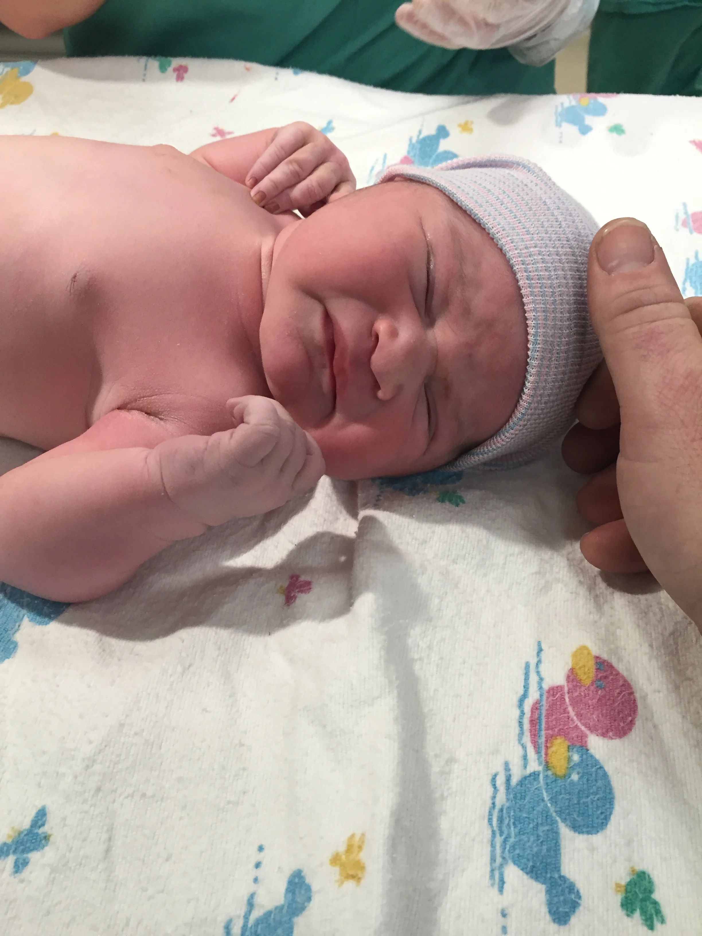 I heard her beautiful cry in my fogginess and just wanted to see her, feel her, you know, be her mom. They brought her over for a few pictures, but were worried the infection had spread to her, so they took her.
